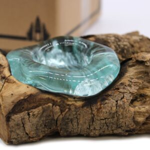 Szklana Miska Wtopiona w Drewno – Niebieska