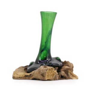 Szklany Wazon Wtopiony w Drewno – Waza Mała