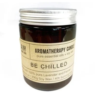 Aromaterapeutyczna świeczka sojowa – Be Chilled / Lawenda i Koper włoski. Świeca sojowa stworzona z naturalnych składników, łącząca olejki eteryczne z lawendy i kopru włoskiego. Jej unikalna kompozycja zapachowa działa uspokajająco, przywraca równowagę emocjonalną, wspomaga relaks oraz redukuje uczucie niepokoju i stresu. Świeca produkowana jest na bazie ekologicznego wosku sojowego, ma pojemność 200 g i czas palenia aż 40 godzin. Pozbawiona sztucznych dodatków, bezpieczna dla zdrowia i środowiska, rekomendowana jako naturalny sposób na wyciszenie, odświeżenie wnętrza oraz stworzenie przyjemnej atmosfery.