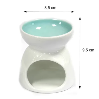 Biały kominek zapachowy – Kwiaty. Wysokość 9,5 cm. Ceramiczny kominek do aromaterapii z błękitną miseczką to połączenie elegancji i nowoczesności. Prosty, zaokrąglony kształt nadaje mu uniwersalny wygląd, a barwna górna część wprowadza subtelny akcent kolorystyczny do wnętrza. Idealny do stosowania z olejkami lub woskami zapachowymi – pięknie podkreśli klimat salonu, sypialni czy łazienki, roztaczając relaksujący aromat i stanowiąc interesującą ozdobę każdego domu.