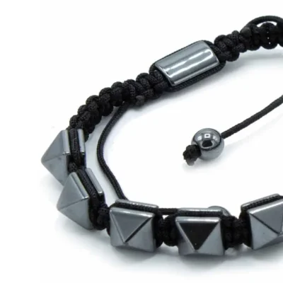 Bransoletka magnetyczna z Hematytu – Piramidy. Wymiary 7 x 0,5 cm. Bransoletka magnetyczna z hematytu w kształcie piramid to elegancki dodatek inspirowany tybetańską tradycją Shamballa – symbolem spokoju, miłości i duchowego oświecenia. Składa się z naturalnie magnetycznych piramid hematytu, które cenione są za działanie uziemiające, stabilizujące emocje i wspierające dobre samopoczucie. Hematyt w tej formie wzmacnia aurę ochronną oraz pomaga zachować pewność siebie i wewnętrzną siłę.