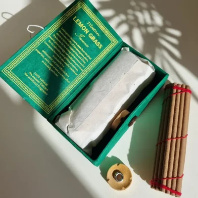 Kadzidełko Himalajskie – Trawa Cytrynowa. Wymiary opakowania 12 x 6,5 x 3,5 cm. Zestaw obejmuje 30 pachnących kadzidełek, stylową drewnianą podstawkę oraz ulotkę z informacjami. Wszystko umieszczone jest w dekoracyjnym pudełku, doskonałym na upominek. Każdy patyczek został wykonany ręcznie, zgodnie z tradycyjnymi recepturami nepalskich rzemieślników, z użyciem najwyższej jakości naturalnych składników.