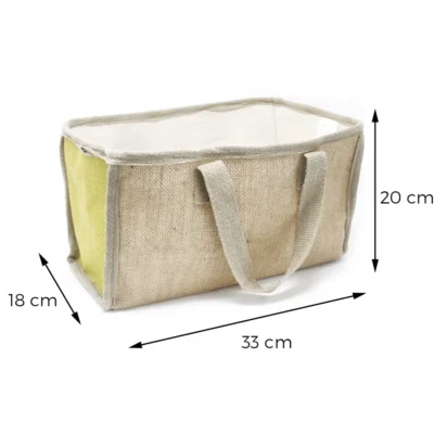 Koszyk na zakupy z juty – Oliwkowy Duży. Wymiary 33 x 18 x 20 cm. Stylowy, kompaktowy koszyk na zakupy w naturalnym odcieniu to połączenie prostoty i elegancji z subtelnym oliwkowym akcentem po bokach. Szerokie, solidne uchwyty zapewniają wygodny chwyt, a wytrzymała juta najwyższej jakości gwarantuje długie użytkowanie. Lekki i poręczny – idealny na szybkie zakupy, wizytę na bazarku czy jako modny organizer w domu. To ekologiczny wybór dla świadomych klientów, którzy stawiają na funkcjonalność i styl.