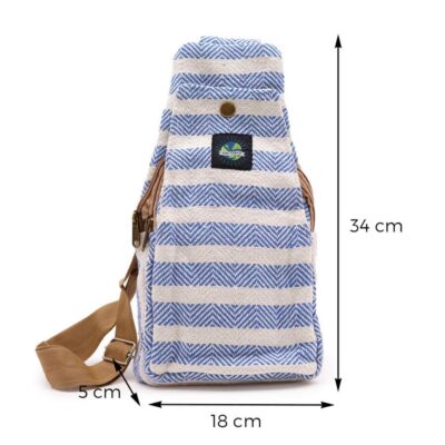 Plecak na jedno ramię – Biało niebieski. Wymiary 34 x 18 x 5 cm. Szukasz plecaka, który łączy wygodę, styl i oryginalny design? Ten bawełniany plecak na jedno ramię to idealny wybór dla osób ceniących praktyczność i niebanalny wygląd. Pleciony wzór w odcieniach niebieskiego i beżu dodaje mu lekkości i sprawia, że pasuje zarówno do codziennych stylizacji, jak i na wyjazdy. Wykonany z wysokiej jakości bawełny, jest miękki w dotyku, przyjazny dla skóry i wytrzymały. Dzięki solidnemu i szerokiemu paskowi na ramię zapewnia komfort noszenia nawet przez dłuższy czas. Kompaktowy rozmiar i praktyczne kieszenie na zamek błyskawiczny pozwalają wygodnie przechowywać najpotrzebniejsze rzeczy – od telefonu po portfel.
