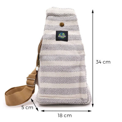 Plecak na jedno ramię – Szaro biały. Wymiary 34 x 18 x 5 cm. Szukasz plecaka, który wyróżni Cię z tłumu? Oryginalny, trójkątny kształt przyciąga wzrok i nadaje plecakowi wyjątkowego charakteru. Wyrazisty, geometryczny wzór w jodełkę w subtelnych odcieniach bieli i szarości sprawia, że pasuje do wielu stylizacji. Szeroki, regulowany pasek w kolorze jasnobrązowym zapewnia wygodę noszenia zarówno na ramieniu, jak i na skos. Wysokiej jakości materiały gwarantują trwałość i przyjemność użytkowania na co dzień. Plecak z pewnością doskonale sprawdzi się w pracy, na uczelni czy podczas wycieczek, pozwalając podkreślić swój styl i cieszyć się komfortem przez cały dzień.