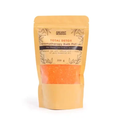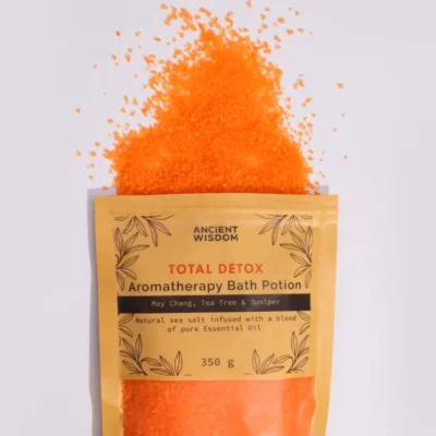 Sól do kąpieli – Totalne oczyszczenie. Totalne Oczyszczenie to harmonijne połączenie soli morskiej z odświeżającymi olejkami eterycznymi z may chang, drzewa herbacianego i jałowca. Cytrusowo-kwiatowy aromat may chang dodaje lekkości i poprawia nastrój, olejek z drzewa herbacianego przywraca uczucie czystości i świeżości, a jałowiec delikatnie tonizuje i pobudza skórę. To idealna propozycja dla osób pragnących po kąpieli poczuć pełne odnowienie, lekkość a także przypływ energii.