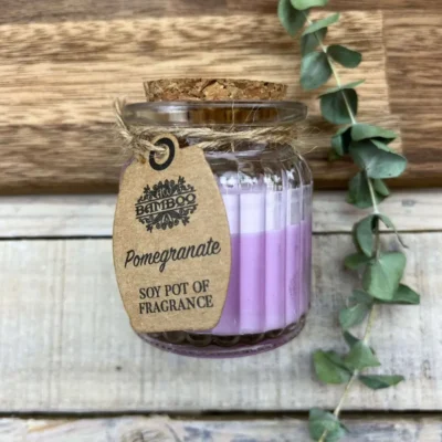 Zapachowa świeczka sojowa – Granat. Wymiary 7 x 5,5 x 5,5 cm. Świeca sojowa, w której soczysty aromat dojrzałego granatu został wzbogacony kompozycją naturalnych olejków eterycznych i perfumeryjnych. Elegancki słoiczek z ekologicznym korkiem subtelnie podkreśla wyrazisty charakter produktu i skutecznie chroni świeży, owocowy zapach przed ulotnieniem. Wyjątkowa nuta granatu wypełnia wnętrze atmosferą energetycznej świeżości, przytulności i relaksu, idealnie sprawdzając się podczas wieczornego odpoczynku, spotkań w gronie bliskich i chwil aromatycznego relaksu.
